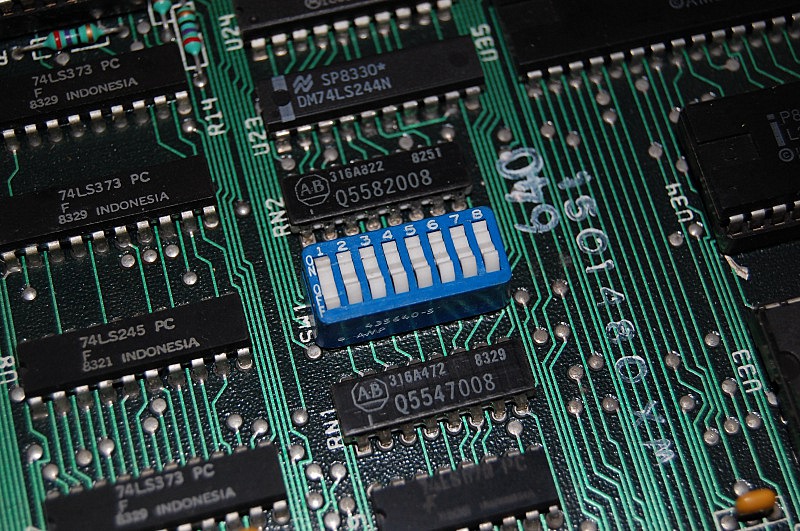 To tell the mainboard what hardware configuration existed, the mainboard had two sets of DIP switches - these were used to declare the amount of memory installed, what type of monitor was connected (colour or monochrome), and whether a math co-processor was installed. Later PC clones ran a piece of firmware accessible by pressing and holding a specific key on initial startup, e.g. AMI, Award or Phoenix BIOS, but back in 1981 high-capacity ROM chips that could store the configuration and diagnostic software were very expensive - as such boards got hardware switches and the software was supplied on disk.