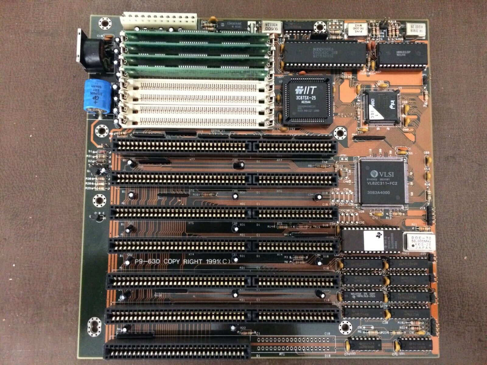 A modern Baby AT form factor motherboard, this one with a VLSI 82C311 chipset and AMD Am386SX-25 CPU.