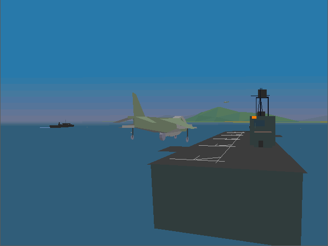 Before I went into a mission I entered the Combat Air Patrol "mission", which is always available as long as you have a Harrier available to jump into. Without any weapons loaded, I played around with the VTOL (Vertical Take-Off and Landing). For me, getting airborne was easy but establishing a stable hover was tricky at best, usually ending up with me ploughing into the sea or the side of the carrier when attempting to re-land. As with most things, I got a lot better with practice!
