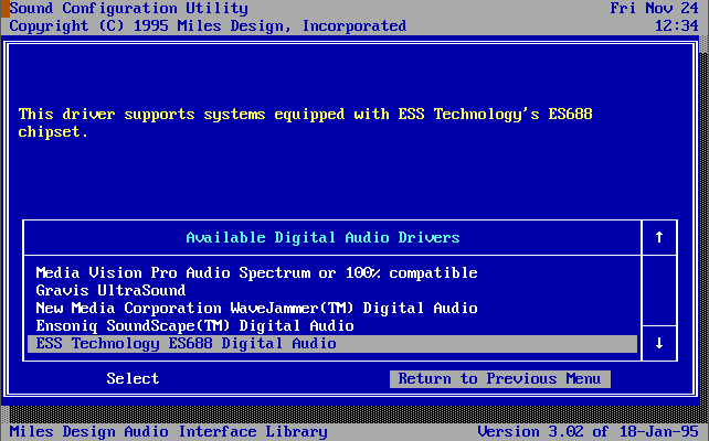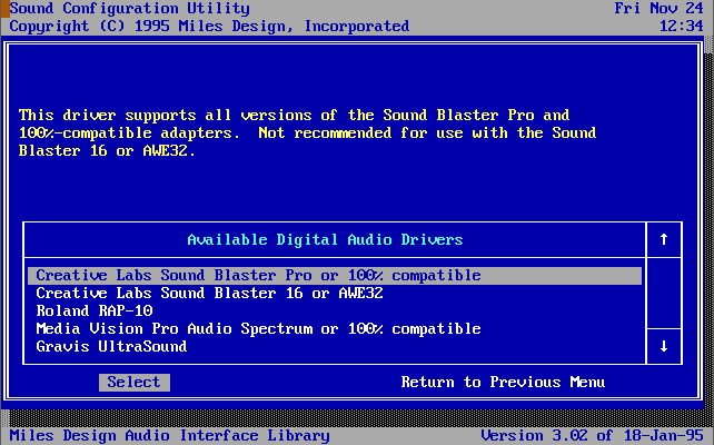 Since Destruction Derby makes use of the Miles Audio Interface for its sound driver implementation, other settings can be found in the file AILDRVR.LST in the game's directory.