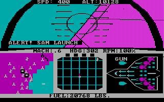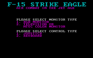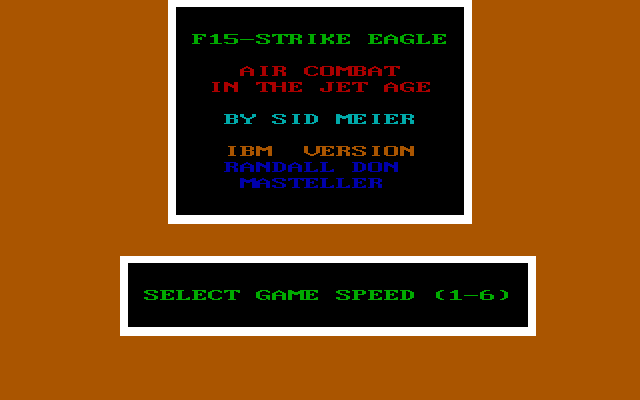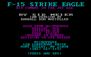 After being very well received on the Atari 8-bit computers and the Commodore 64, F-15 Strike Eagle was ported to the Apple II, IBM PCjr, and IBM PC, the latter of which was converted by Randall Don Masteller.