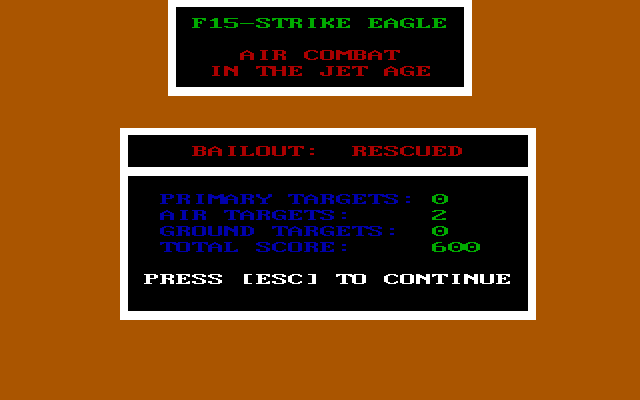 F-15 Strike Eagle does not have any ability to save your progress.