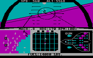 The points you earn on a mission increase with each of the 3 difficulty levels aside from 'Arcade' mode. At the 'Rookie' level, only two gun hit are required to bring down an enemy plane. At the 'Pilot' level, the enemy pilots are much better but will occasionally turn and run. Three gun hits are necessary to destroy a plane. At the 'Ace' level, SAMs are very accurate, enemy pilots won't disengage, and four gun hits are necessary to bring down a plane.