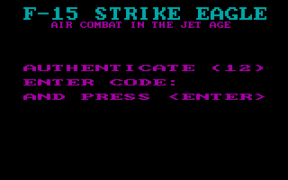 The game features manual copy protection. At the start of the game you will be asked to enter an authentication code. The game's manual contains these codes on each page (look for the "TOP SECRET" text with the box beside it). If you get the code wrong, even once, you will not be able to launch missiles or drop bombs.