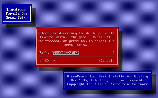 To run the game after installation is complete, go to the game's subdirectory and type F1GP <Enter>.