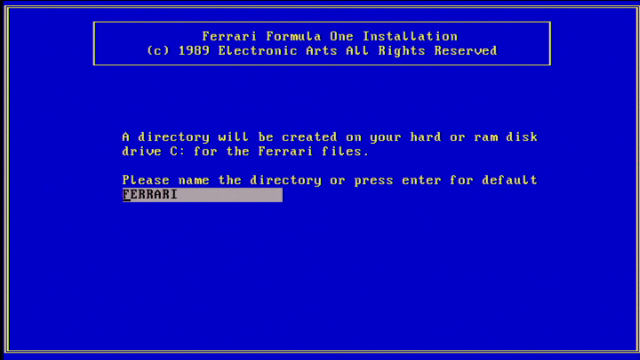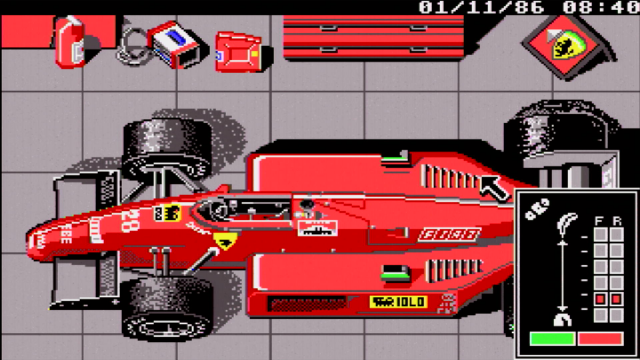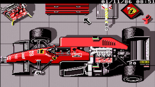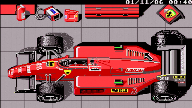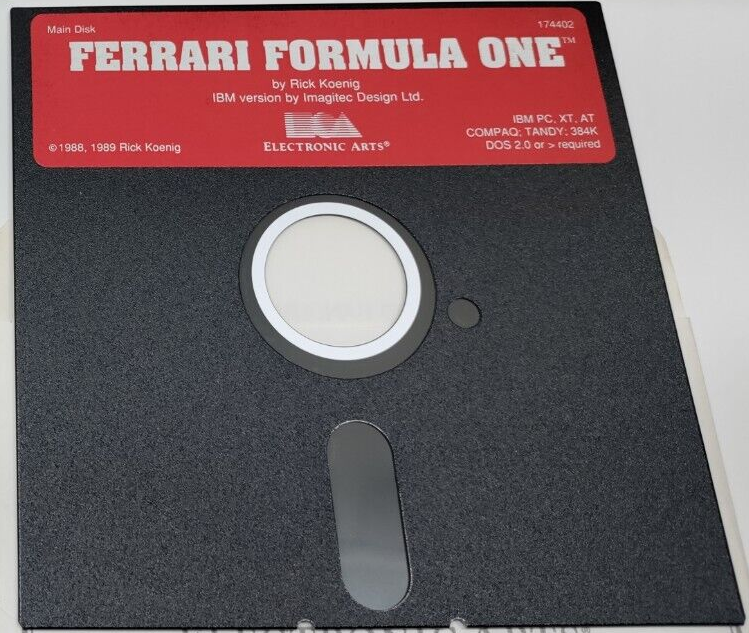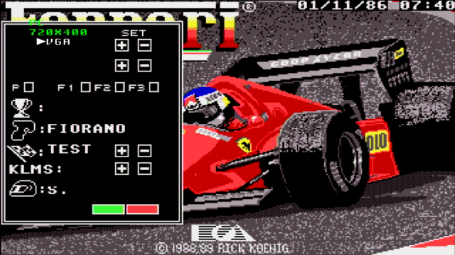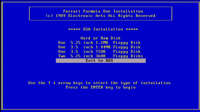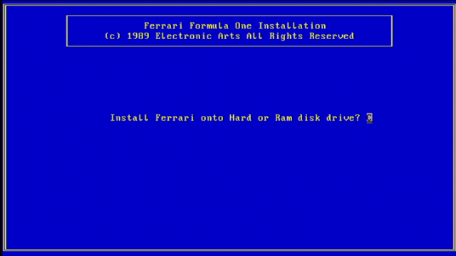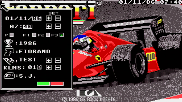 Fully sponsored by Scuderia Ferrari, Electronic Arts' game was ported to the DOS platform in 1989, having been released on the Amiga and Atari ST the year before. A Commodore 64 version followed in 1990.