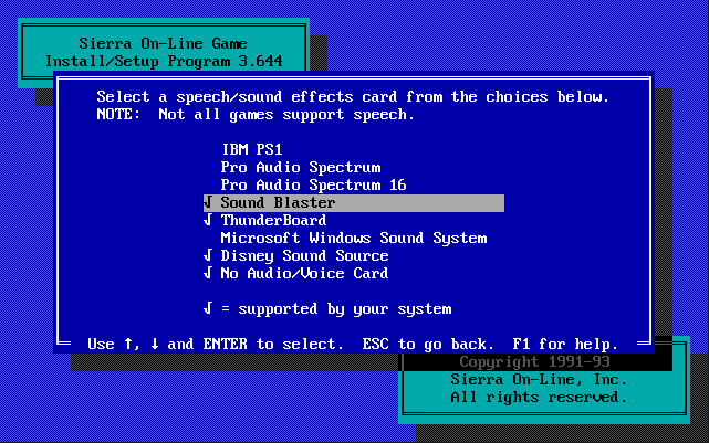 Symptom: During the intro scene after the Sierra logo disappears I only hear music - I do not get the 'Yee-Haa!' sound.