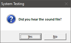 You should hear a male voice saying "Your system is correctly configured for playing wave files", and this prompt will appear: