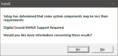Clicking 'Yes' will attempt to open a Windows Help file (.HLP) on your machine. Note that .HLP files are no longer supported in versions of Windows beyond Windows 8.1. I'll proceed with the installation as if the sound check worked and you clicked 'Next' or chose not to see more information: