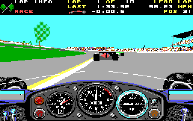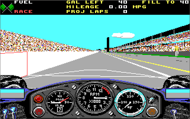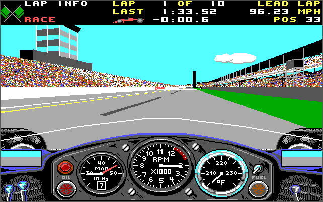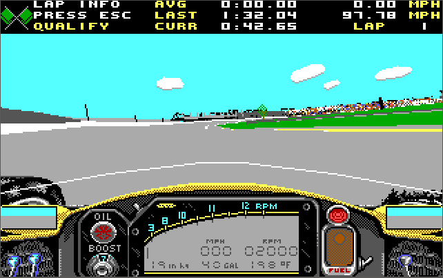 "Indy 500, given its 3D polygon graphics is pretty system intensive. As such, despite the game being able to run on an XT, it's best run in full detail on a 386DX-25 with 1 MB of RAM. Go with the VGA/MCGA option for the highest graphical fidelity which is 320 x 200 in 256 colours (although with EGA it's still very well done).
