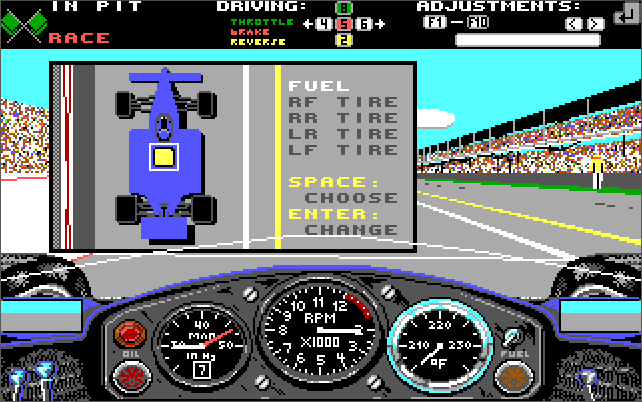 As with most games, the MT-32 audio option is the recommended choice, though the Ad Lib sound is just fine if you don't have a Roland. Playing the game with a joystick is preferable for the most realism but you can easily get used to playing it just with the keyboard. Take your time to learn the effect each car setup option does - this is the only way to succeed at the higher difficulty levels."