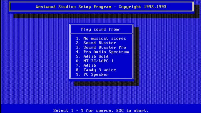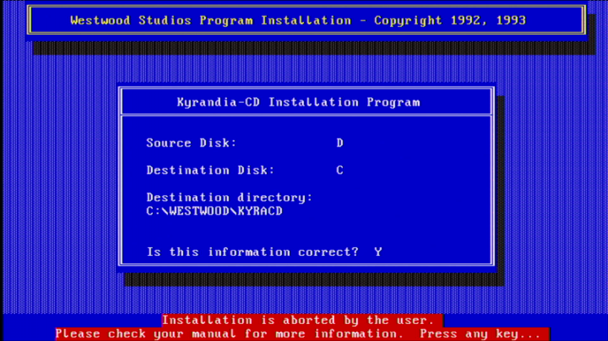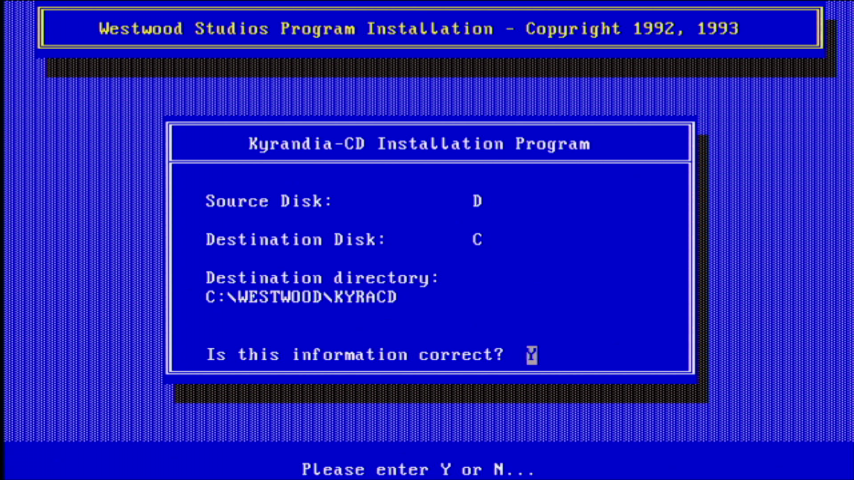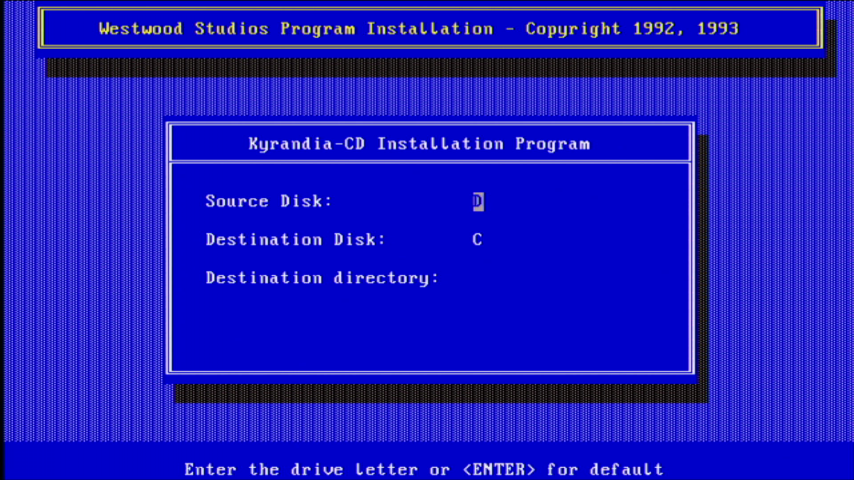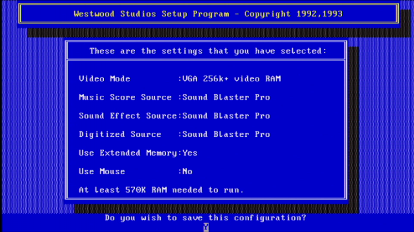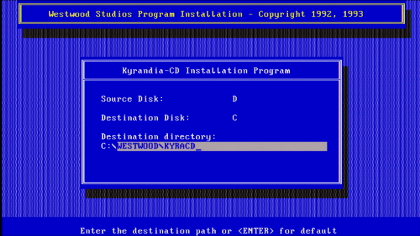 To configure the game's video and audio settings at any time later, you can run SETUP.EXE in the game's installation directory (default is C:\WESTWOOD\KYRACD for the CD-ROM version):
