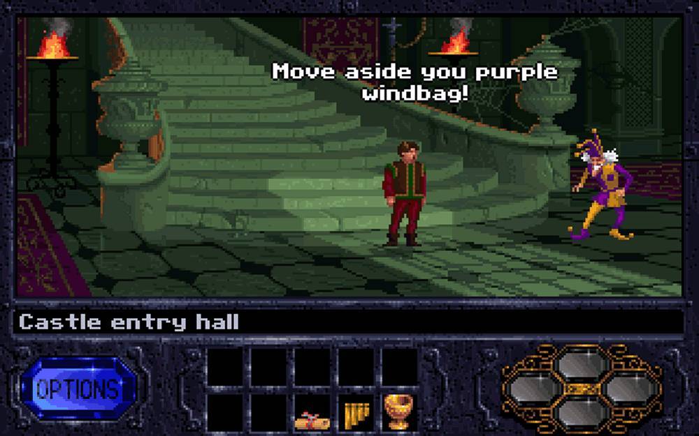 As Brandon, the prince of Kyrandia, you must pursue the elusive jester Malcolm, who has murdered King William and Queen Katherine, to recover a powerful gemstone. The kingdom's powerful magic users, known as the Mystics, imprison Malcolm in the royal castle, while their chief Kallak goes into hiding in order to raise their son Brandon, his grandson, in secret. Eighteen years later, Malcolm's prison breaks, allowing him to escape and make use of the castle's most valuable treasure called the Kyragem - a mystic stone containing the kingdom's vast magical power, in order to seek revenge. Kallak, sensing Malcolm's escape, leaves a message for Brandon before he is turned to stone by the jester. Finding him petrified, Brandon is contacted by the trees and informed that he is the only one left to defeat Malcolm.