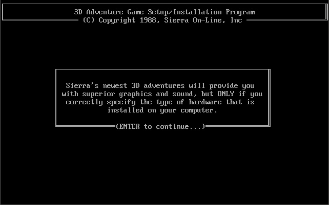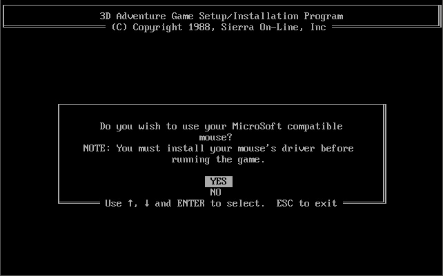 The game doesn't require any extended memory (XMS) or expanded memory (EMS) drivers to be loaded. To install the game or configure the graphics and audio settings, run INSTALL.EXE: