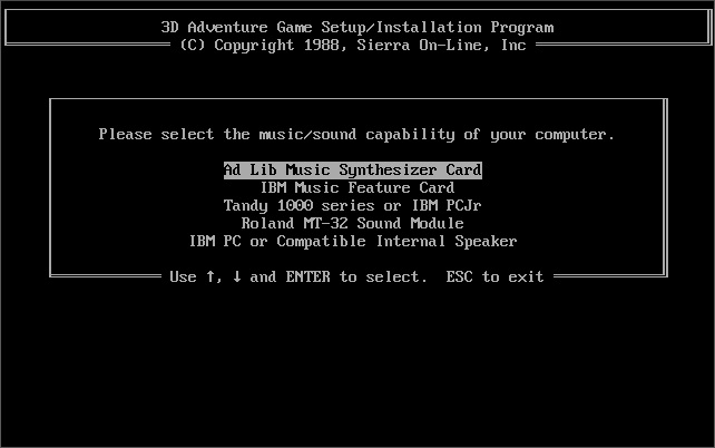 Audio support: IBM Music Card, Ad Lib, Tandy, or Roland MT-32