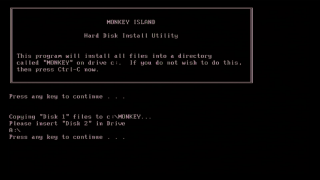 "Monkey Island 1 will run on an XT-compatible, but I recommend a 386 CPU since the game was released when fast 386s and early 486s were the norm. The game is susceptible to instability when running on some faster PCs (fast Pentiums and up), especially those with AMD CPUs though there are patches available (or you can slow down your fast PC by disabling the CPU cache). It's not a memory intensive game, so go with with 1 MB of memory. Graphics options are plentiful, but unsurprisingly the one to go for is the VGA version - any VGA card will do, as the game runs in a maximum resolution of 320 x 200 in 256 colours.