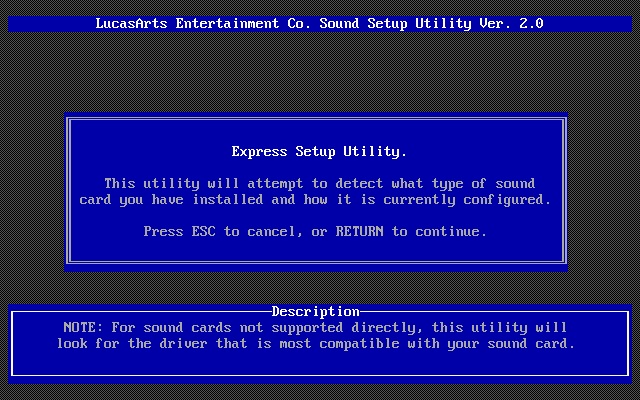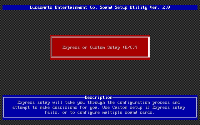 The Ensoniq AudioPCI card was configured via the APINIT.COM utility. Game configured for General MIDI for music, and Sound Blaster Pro for digital audio.