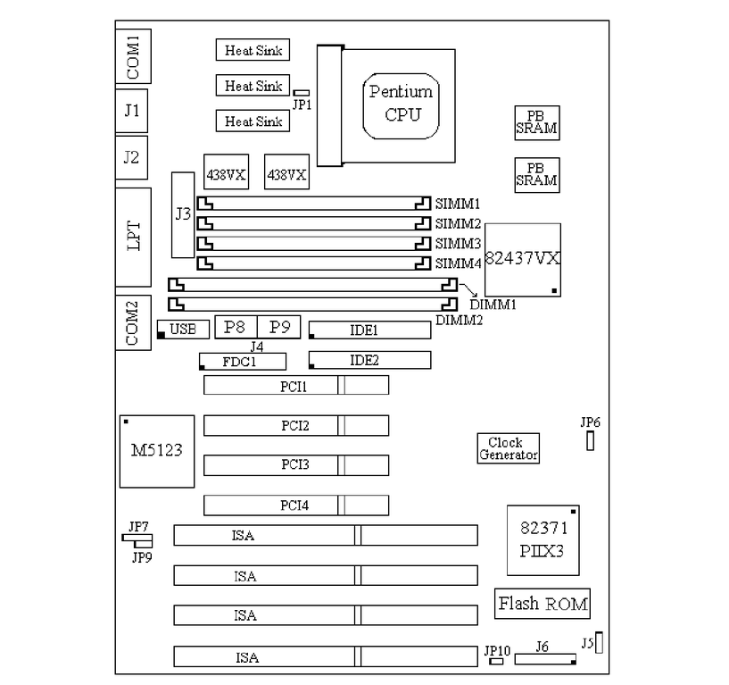Memory: 4 x 168-pin DIMM supporting SDRAMs of PC-66 or PC-100.