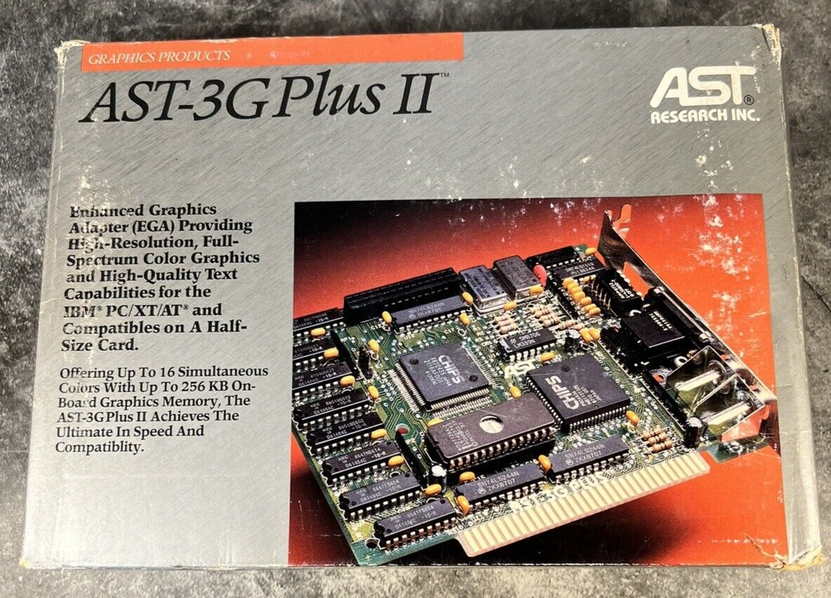The AST-3G Plus II was an enhanced EGA card released in 1987. Designed to work with the AST Premium/286 PC, it succeeded the AST-3G with Plus option by adding support for the NEC Multisync monitor (or equivalent) and AST Premium Display.