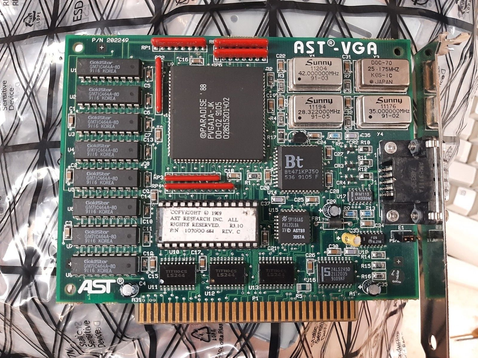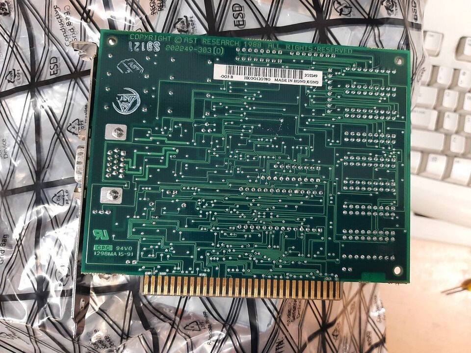 Another VGA card from AST, supporting MDA, HGC, CGA, EGA, and VGA, all on an analogue monitor via its 15-pin DSUB.