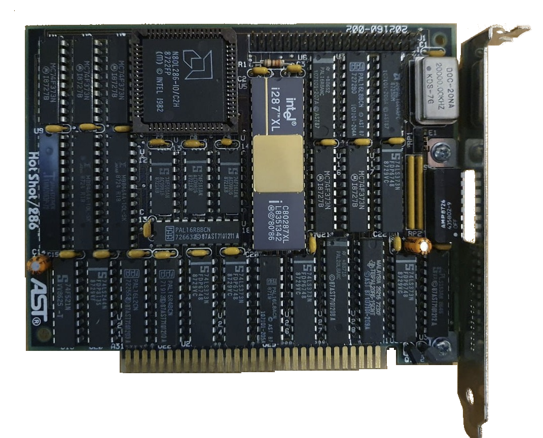 The HotShot/286 was a CPU upgrade board for the IBM PC or PC/XT computer. It contained an Intel 80286-10 CPU and cache memory. It also provided a socket for an 80287 math coprocessor.