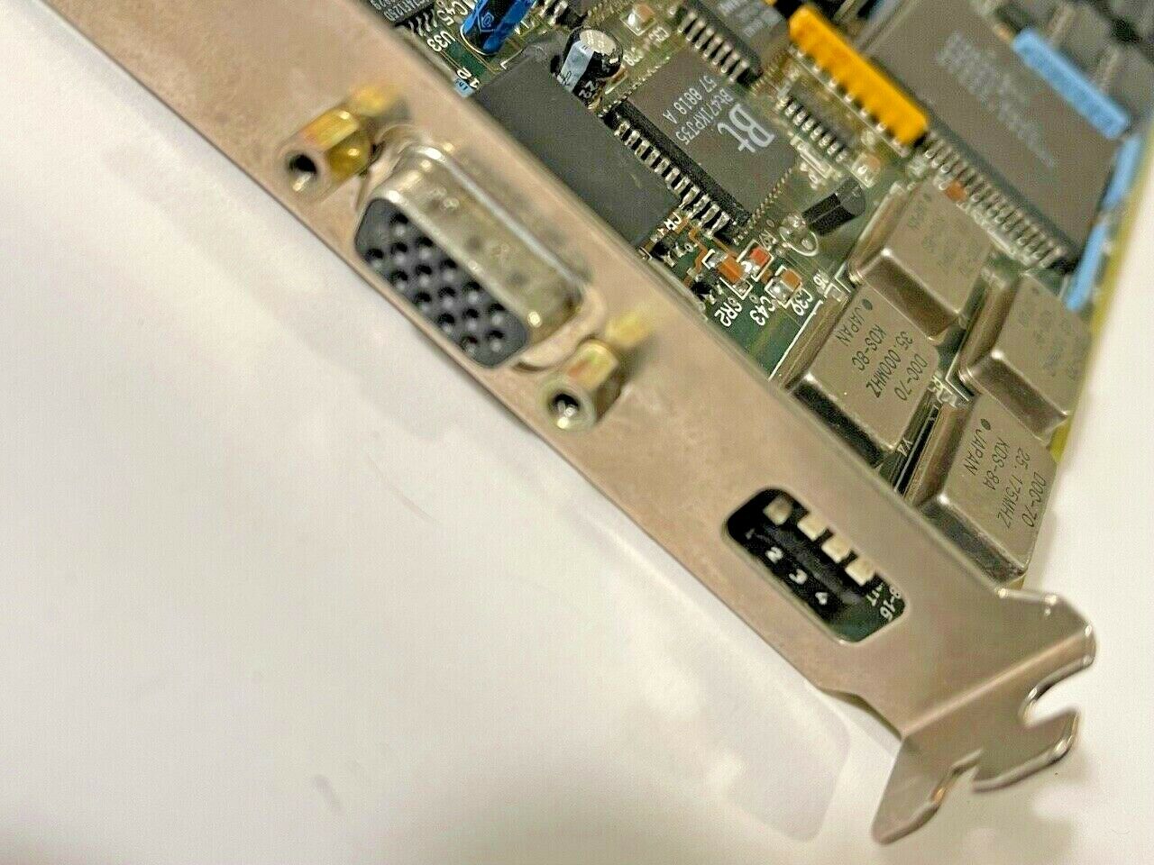 The card has a single jumper in the lower-right corner to configure the monitor type that is connected. The left pair of pins tells the card it is connected to a PS/2 or other analogue monitor. The right pair of pins tells the card it's connected to a multisync monitor.