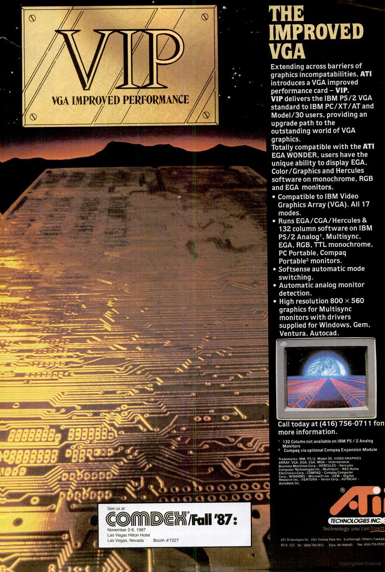 The EGA Wonder VIP two months after the EGA Wonder 800, in August 1987. It was ATI's first VGA card.