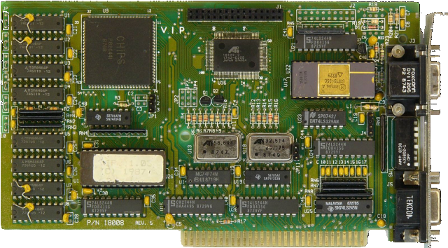 "VIP" stood for VGA Improved Performance. The card came with what ATI called "Softsense" automatic mode switching, which changed the graphics mode based on what the running application requested. This card had DIP switches to select the default startup graphics mode, and its backplate offered both 9-pin TTL and 15-pin analogue connectors.
