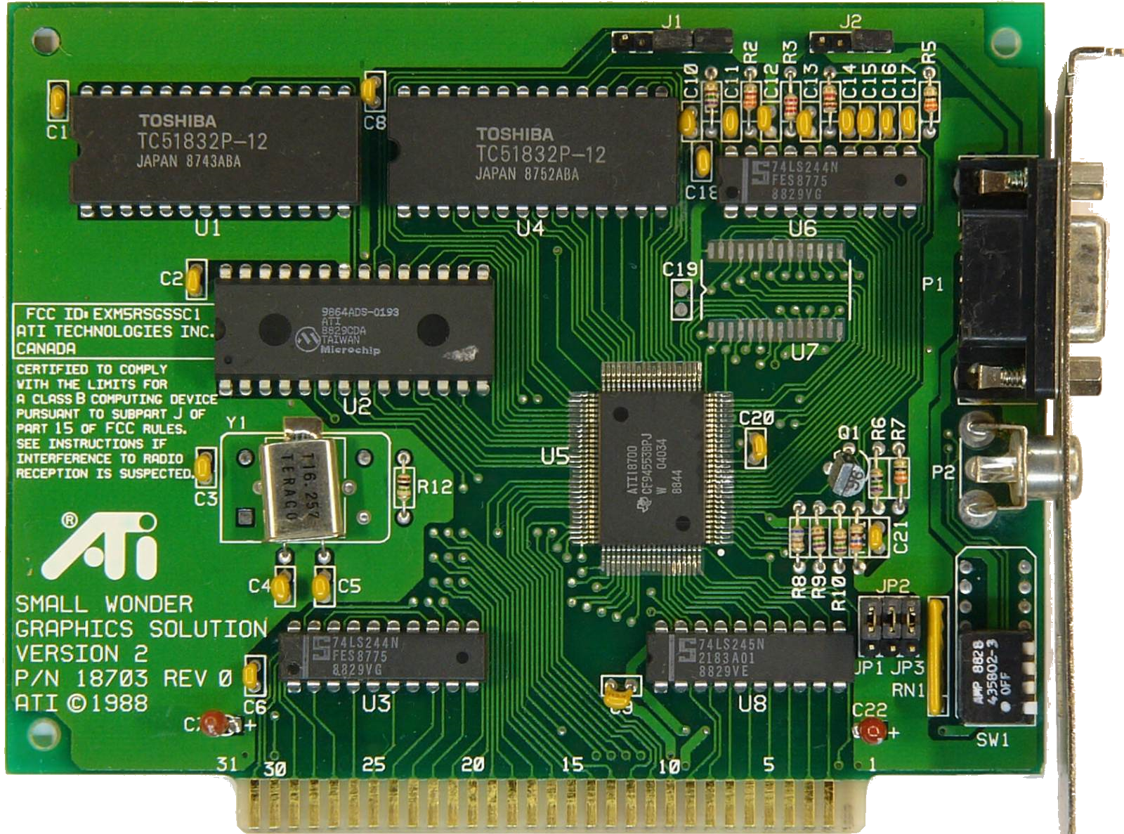 The first version of the Small Wonder graphics card arrived in 1988. The 'Small Wonder Graphics Solution' to use its full title was a Hercules clone also able to support extended CGA modes like 640 x 200 in 16 colours as well as 132-column text.
