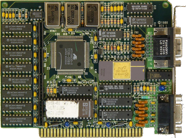 Worth mentioning is that at least three different video cards got the basic branding of 'VGA Wonder', and while they are evolutions of this first card that got the moniker, they offer different capabilities. A later card, sometimes called VGA Wonder 16, was the one that came with a bus mouse port (and was bundled with a Logitech bus mouse) - this first version did not. Reviews at the time also quoted the VGA Wonder running at 800% faster than an IBM VGA if used in a 16-bit slot - this too refers to the 16-bit ISA version of the VGA Wonder, not this 8-bit one, which was still fast at about 400% faster than IBM's, but doesn't operate at twice the speed in a 16-bit slot.