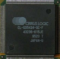 The CL-GD5434 was part of the "Alpine" family of chips, now with a 64-bit internal memory interface. Only supports 64-bit mode if equipped with 2 MB memory. Commonly equipped with 1 MB. 32bpp True Color support, it also had a 64-bit BitBLT engine. Only the CL-GD5434 was also available on the ISA bus.