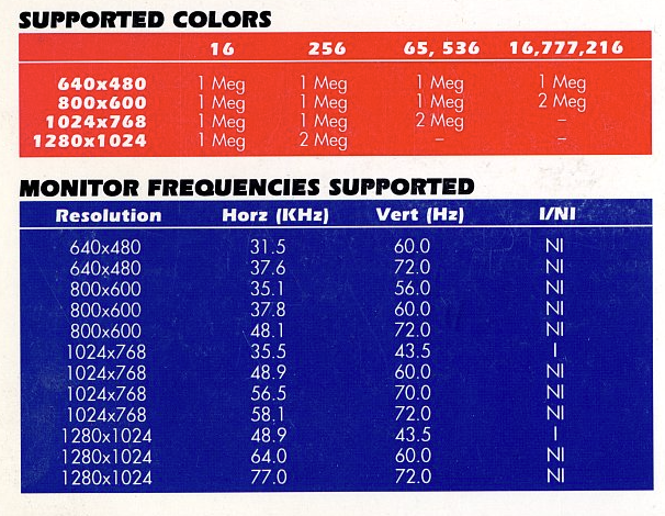 | Bus | ISA 16-bit or VESA Local Bus | |