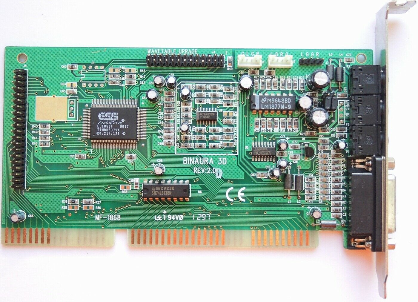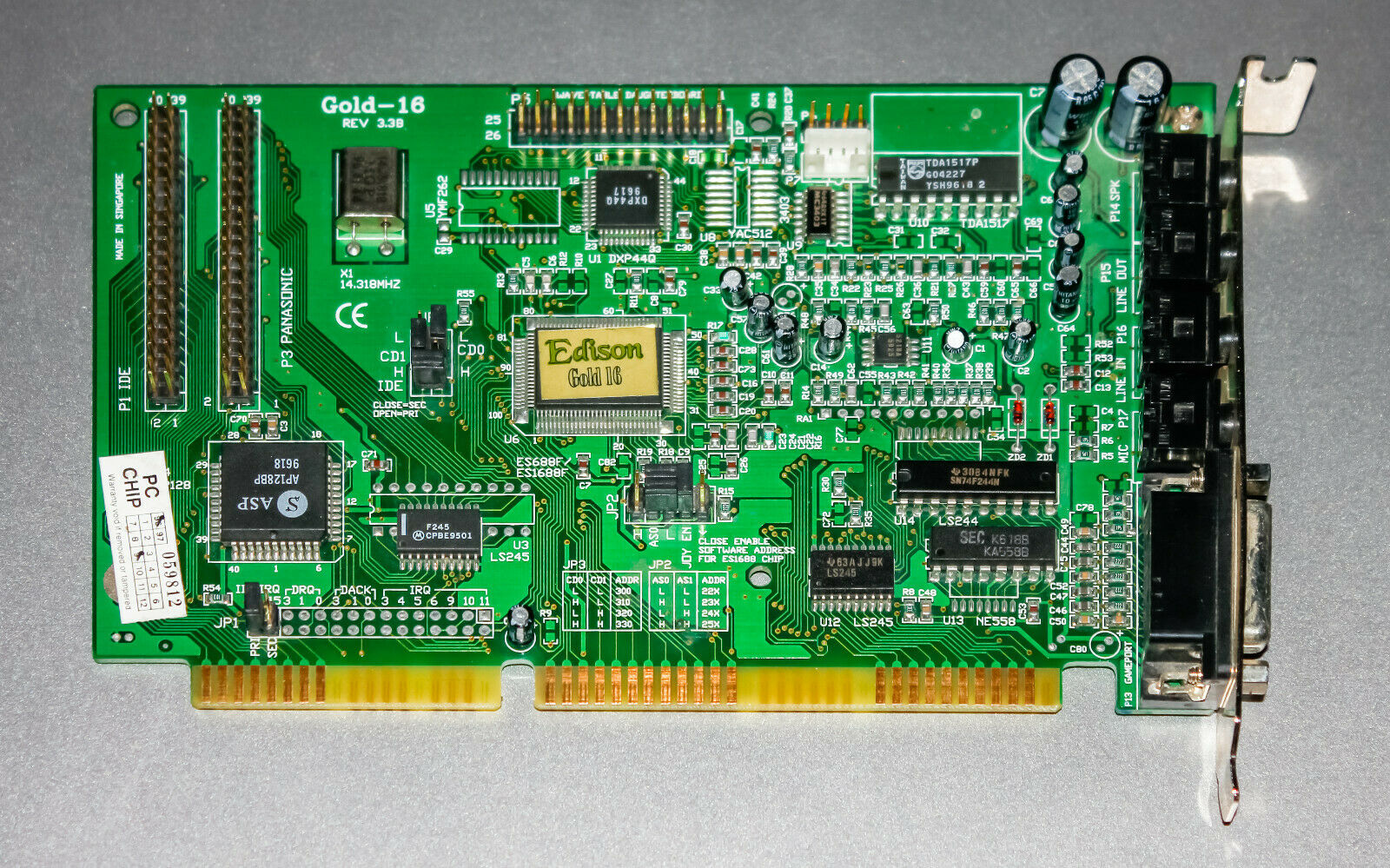 A minor upgrade from the ES688, the ES1688 got a 6-channel mixer (over the ESS688's 5 channels) and a true hardware MPU-401 UART MIDI interface. The card also supported Advanced Power Management (APM) so it had self-timed power down, auto wake up, and suspend/resume support.