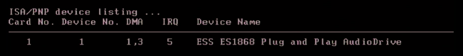 This card provides good sound in Windows, but the DOS drivers only allow for Sound Blaster Pro compatibility (8-bit stereo) and it has a lower sound quality than a real Sound Blaster Pro or the Pro Audio Spectrum.