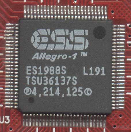 The ES1988 Allegro was also used on a combination PCI audio/modem device, comprising the ES1988 Allegro for audio and an ES56CVM-PI modem.
