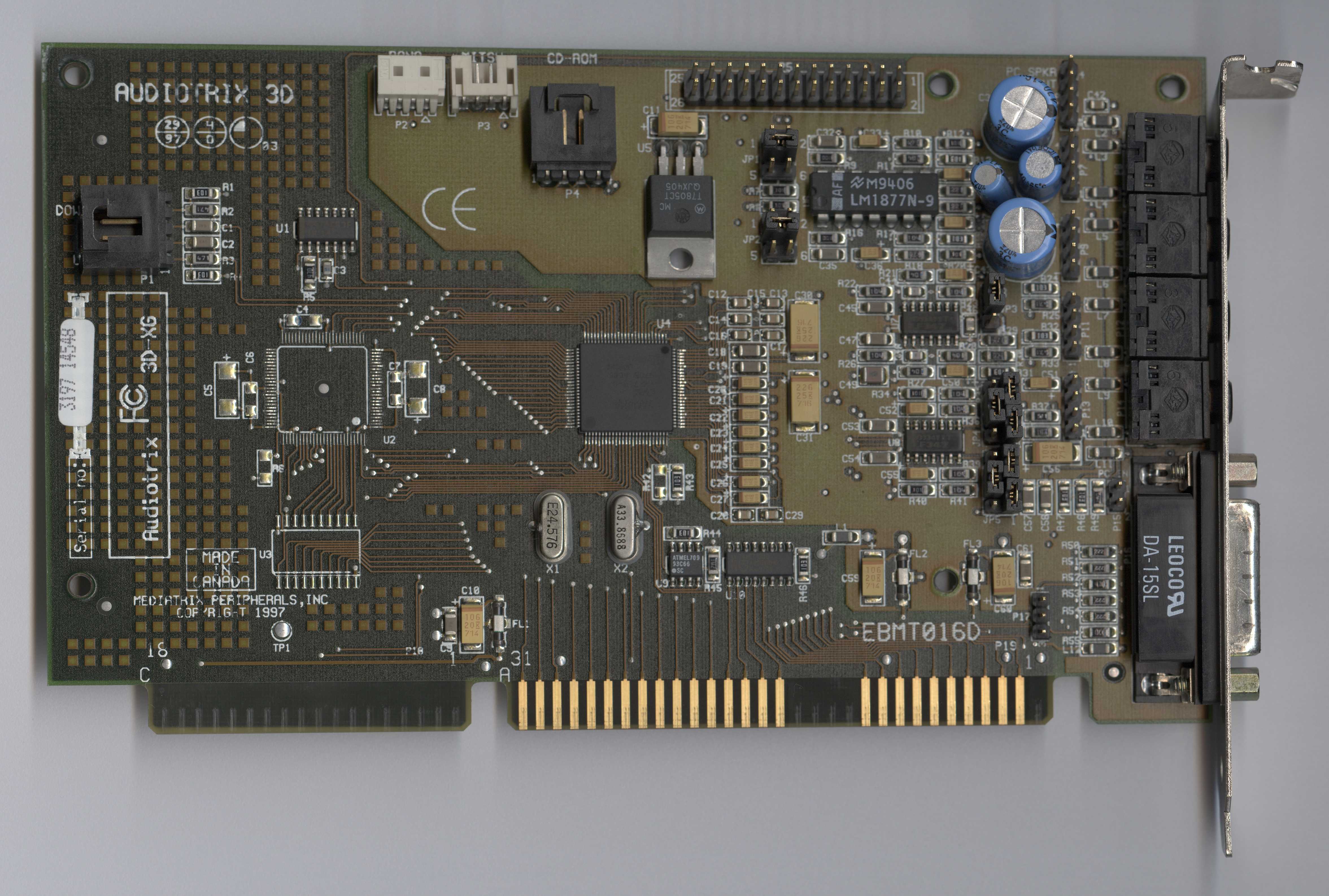The AudiTriX Pro is a Sound Blaster-compatible sound card released in 1994. Being an OPL4 card it is backward compatible with all OPL2- and OPL3-based cards, but adds 24-voice wavetable synthesis on top of standard 20-voice FM synthesis capabilities.
