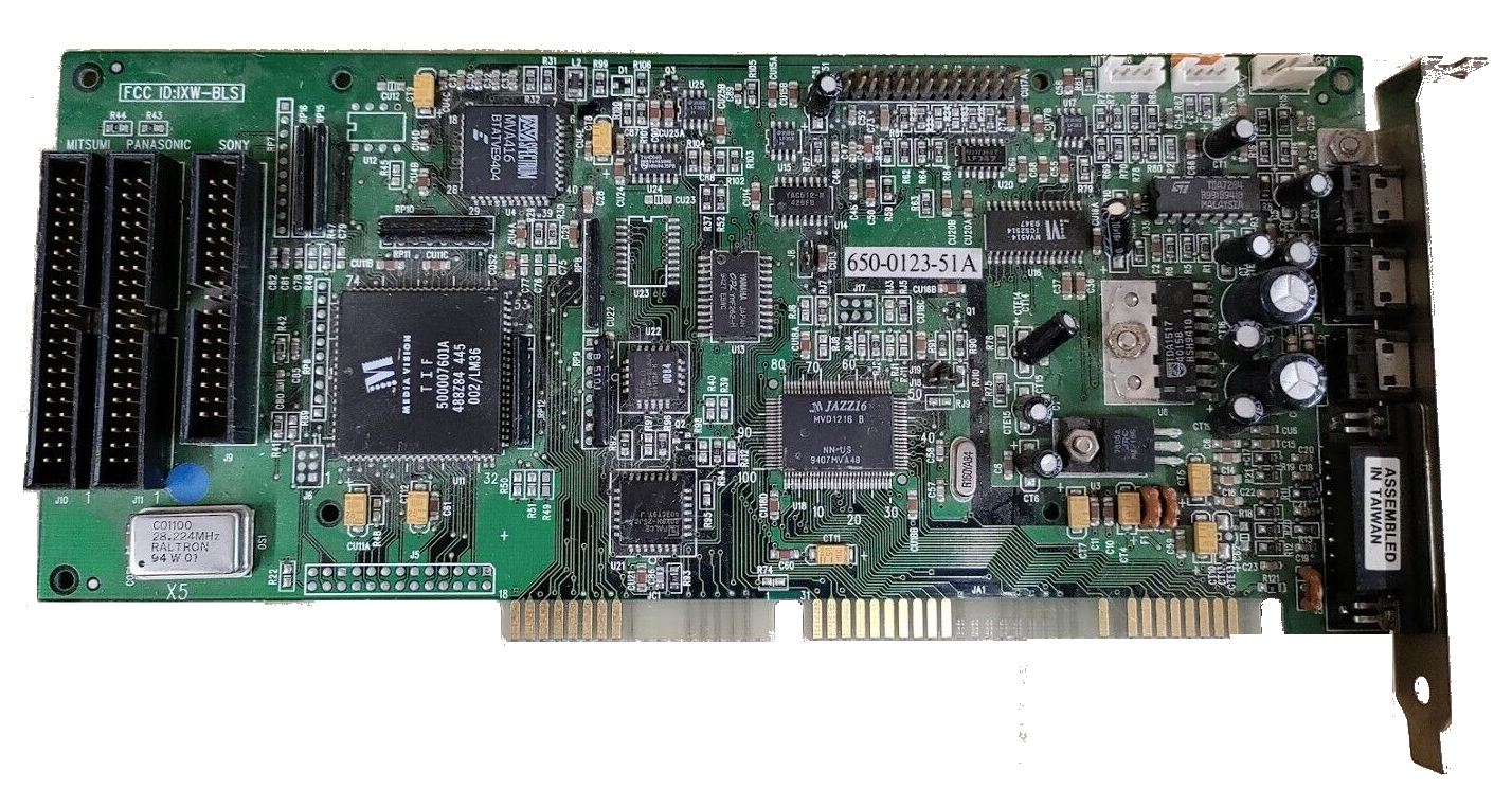 This is the only Media Vision card that did NOT have a CD-ROM interface, hence the "Basic" moniker. Aside from that omission, it's the same as the ProAudio Spectrum 16. It has an MPU-401-compatible MIDI and Game port interface.
