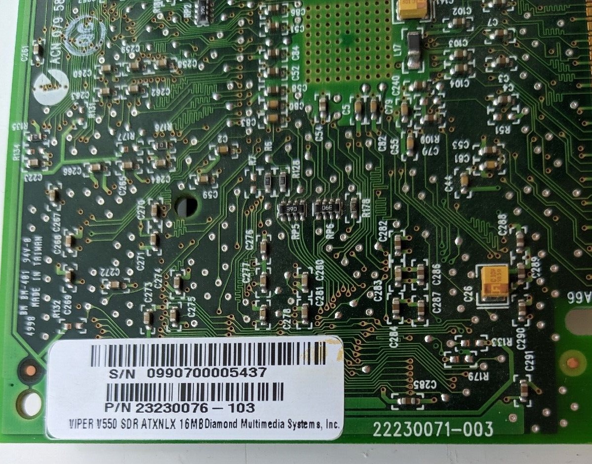 Model and Part #: Diamond Viper V550 PCI, 22230080-002