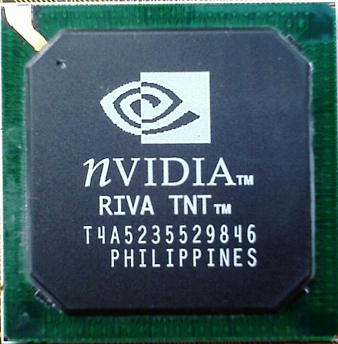 In manufacturing the RIVA TNT chip, nVidia dropped their use of SGS Thomson (ST Microelectronics) as an external chip fabricator that they'd used for the RIVA 128 series, and went all-in with TSMC (Taiwan Semiconductor Manufacturing Company).