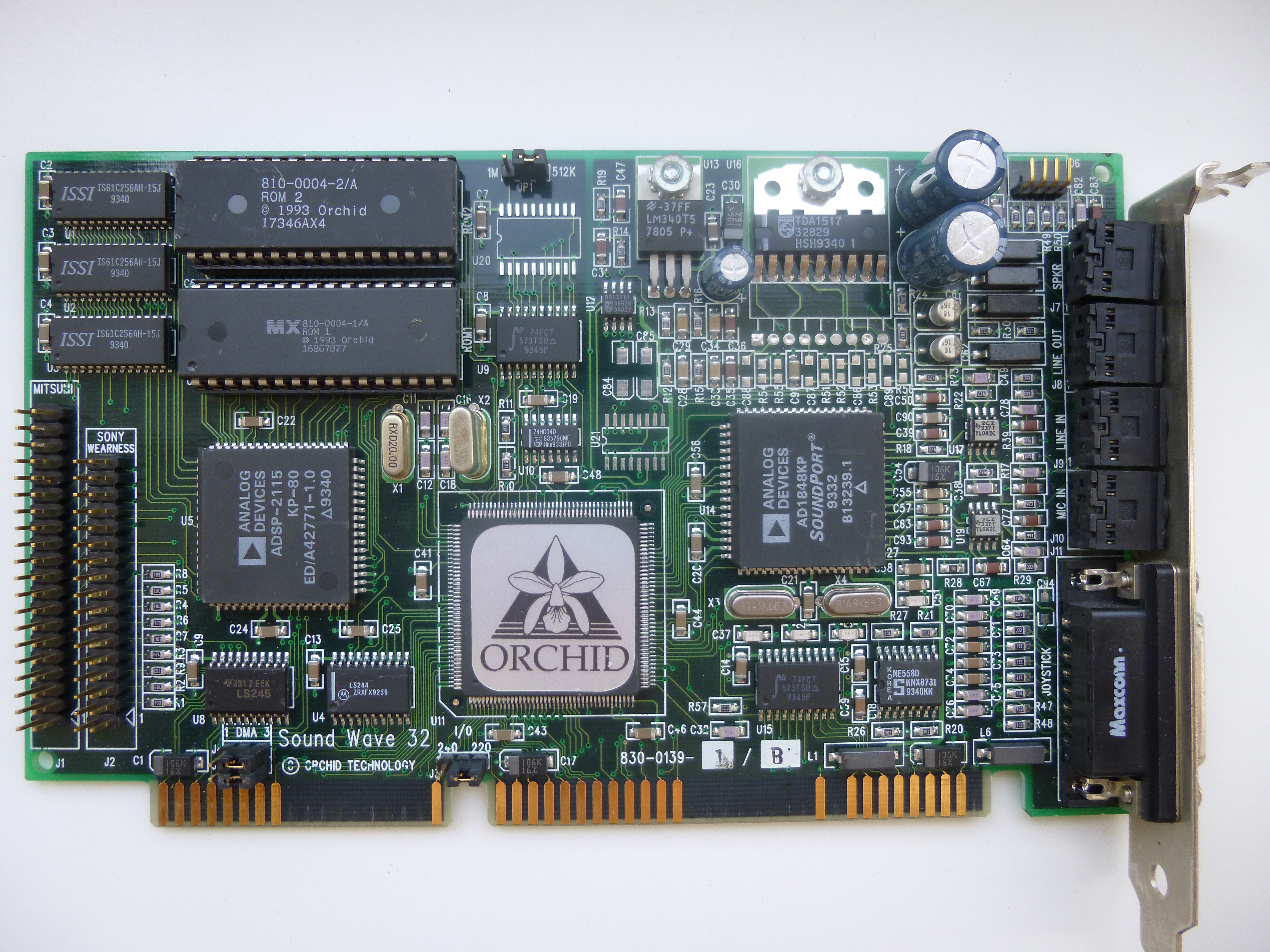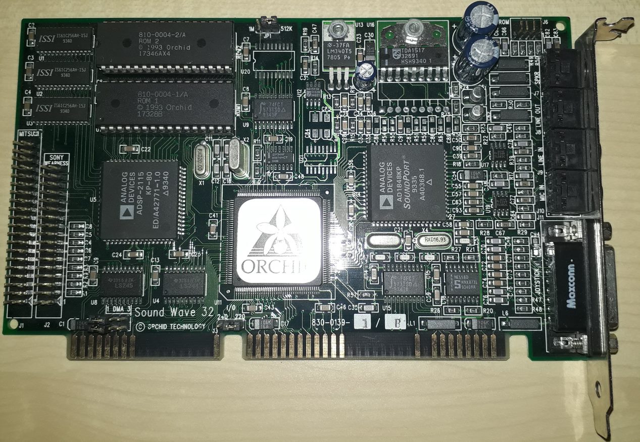 Other sound cards that are very similar to the SW32 include the Beethoven ADSP-16 (no wavetable) / ADSP-16 Wave (with wavetable chips), Cardinal MPC700/DSP16, and the Wearnes Peripherals MML9050 (PA-WP9050-B) - these both use a combination of the Analog Devices AD1848KP, Analog Devices Echo ESC614 and Analog Devices ADSP-2115.