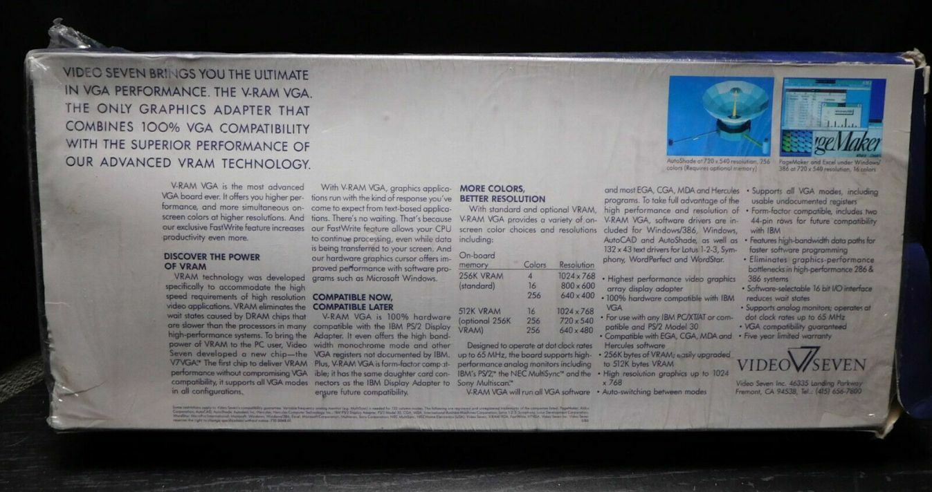 Video Seven are known for their graphics cards throughout the DOS era. In chronological order they are: