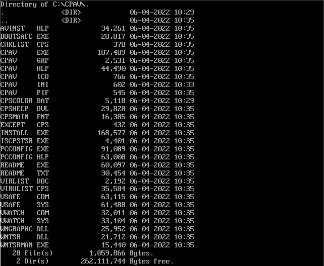 This was eventually sold to Microsoft to incorporate into MS-DOS from version 6.0 onwards. This was rebranded Microsoft Anti-Virus (MSAV for short), but was ultimately the same product under the hood as CPAV. In 1994, Symantec bought Central Point Software, so the product then became Norton Anti-Virus.