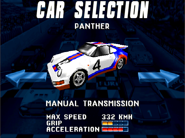 Sponsored by Road & Track magazine, the game came across as an arcade racer similar to Ridge Racer or Electronic Arts' own Road Rash, but the car physics model belied this assumption with fairly unique and detailed control for each car. NFS came with eight high-performance cars to choose from: Toyota Supra Turbo, Lamborghini Diablo VT, Mazda RX-7, Acura NSX, Porsche 911 Carrera, Chevrolet Corvette ZR-1, Dodge Viper RT/10 and Ferrari 512TR.