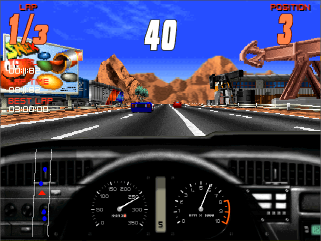 Gameplay: With a decent number of high-performance sports cars to choose from, and tracks of different types and difficulties, NFS has a lot to offer. The game modes are all there, plus you get to race on roads with other traffic and cops, like in Test Drive 1 and 2! Given that it's a Road & Track-sponsored title, the additional footage, spoken descriptions of the cars technical abilities/mechanicals and an intro to the track give this game a polish that is lacking in others. I found NFS a really tough game - there's no difficulty level you can choose, so I guess the idea is to race using slower cars on easier tracks first, and graduate up when you feel ready. 9/10