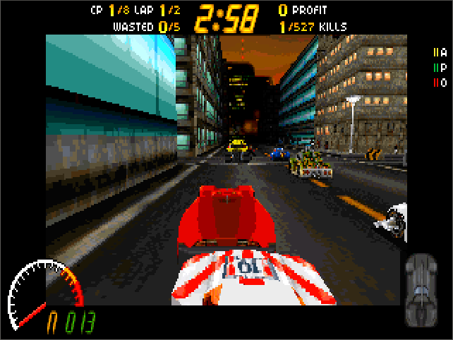 Gameplay: A couple of extra locations to race around, and these are nice. The multiplayer option is also still there, with both modem and direct connection available. 7/10