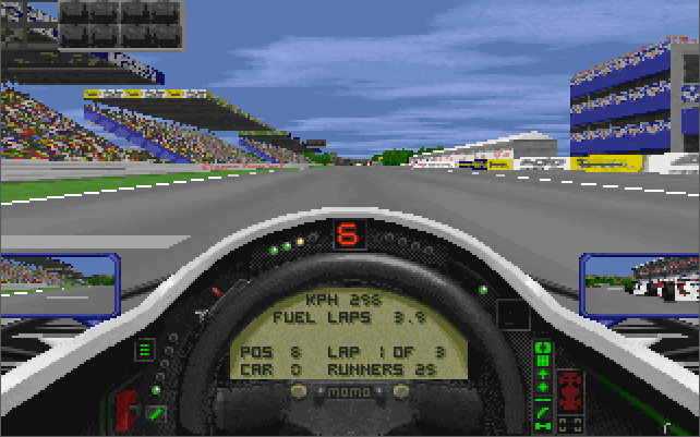 As we've come to expect from Papyrus, the game accurately models every physical aspect of a Formula 1 car of that era including engine, suspension, tyres, steering, chassis, vehicle weight, temperatures and road conditions. This is evident by the presence of physics that are rarely modelled in a computer game like using the throttle and brake for steering as the car's center of gravity shifts forward and backward.