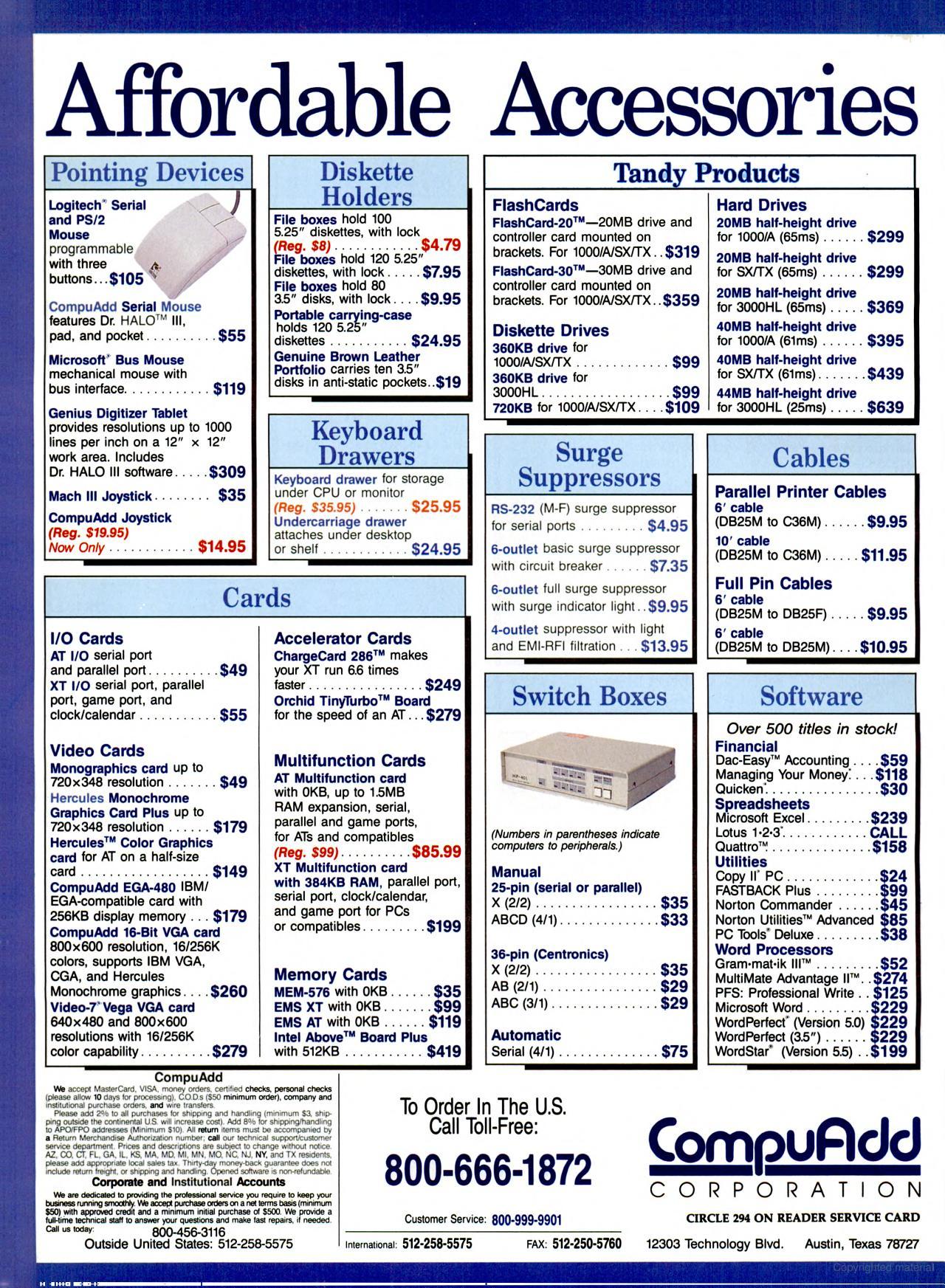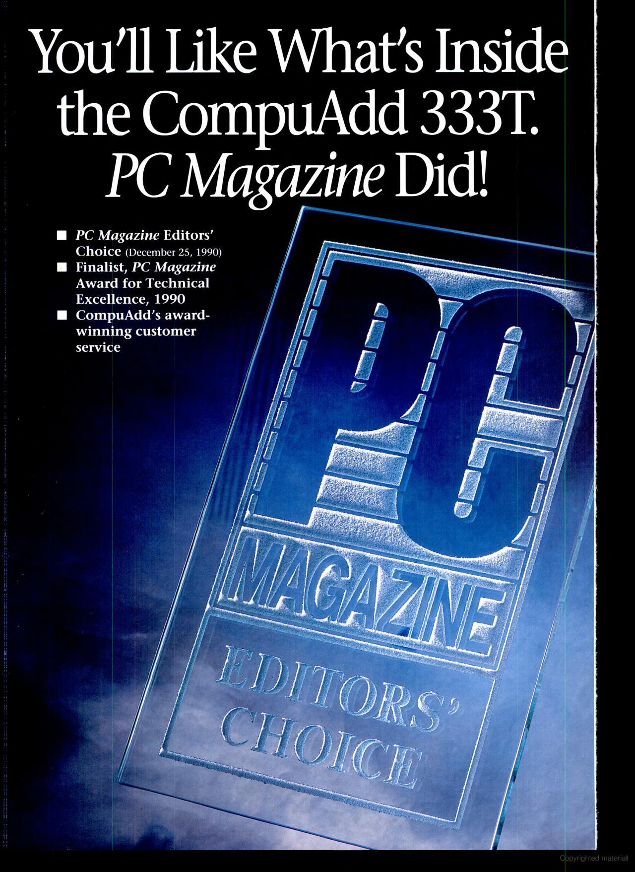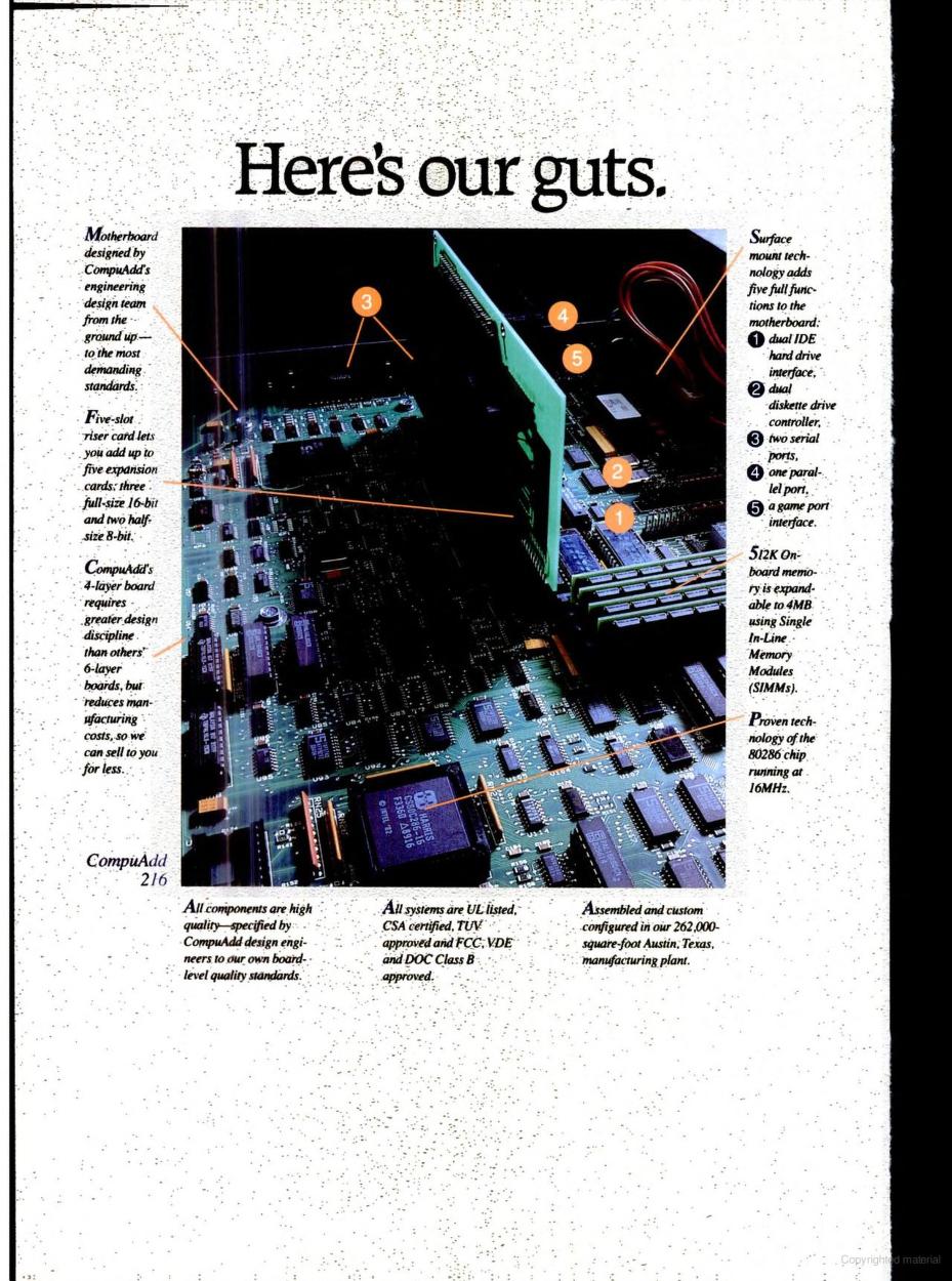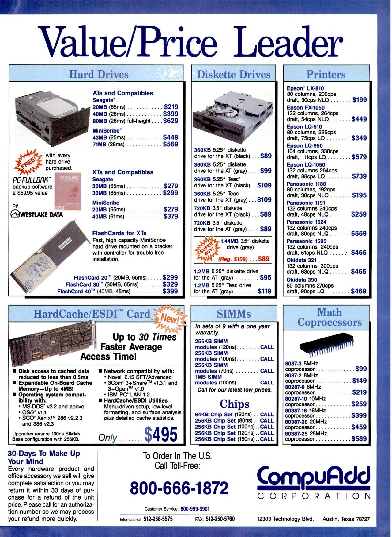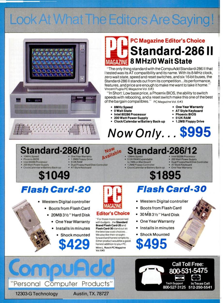 Again, the 286 range only came with 512 KB of RAM despite the fact the lesser NEC V20-based CompuAdd 810 came with 640 KB. The adverts aren't clear, but it's likely all the 386DX-based PCs came with 1 MB of RAM.