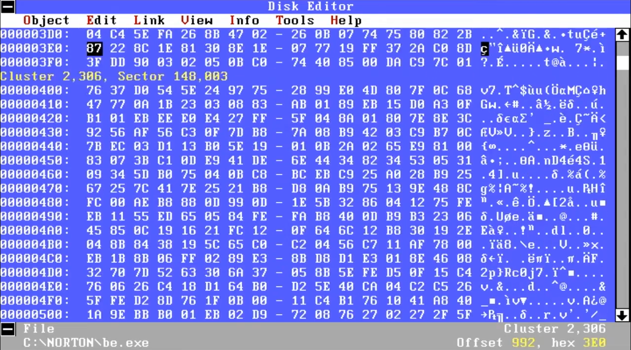 In many cases you could crack the game yourself if you have the crack details. With the use of the DEBUG command (an external DOS command), it was a simple matter of loading part of the file into memory, running a search for a specific set of consecutive bytes, overwriting them with different values, and writing that back to the file. This was made more user-friendly through the use of third party disk editors, such as Norton Disk Editor, which first appeared in version 5.0 of the product.