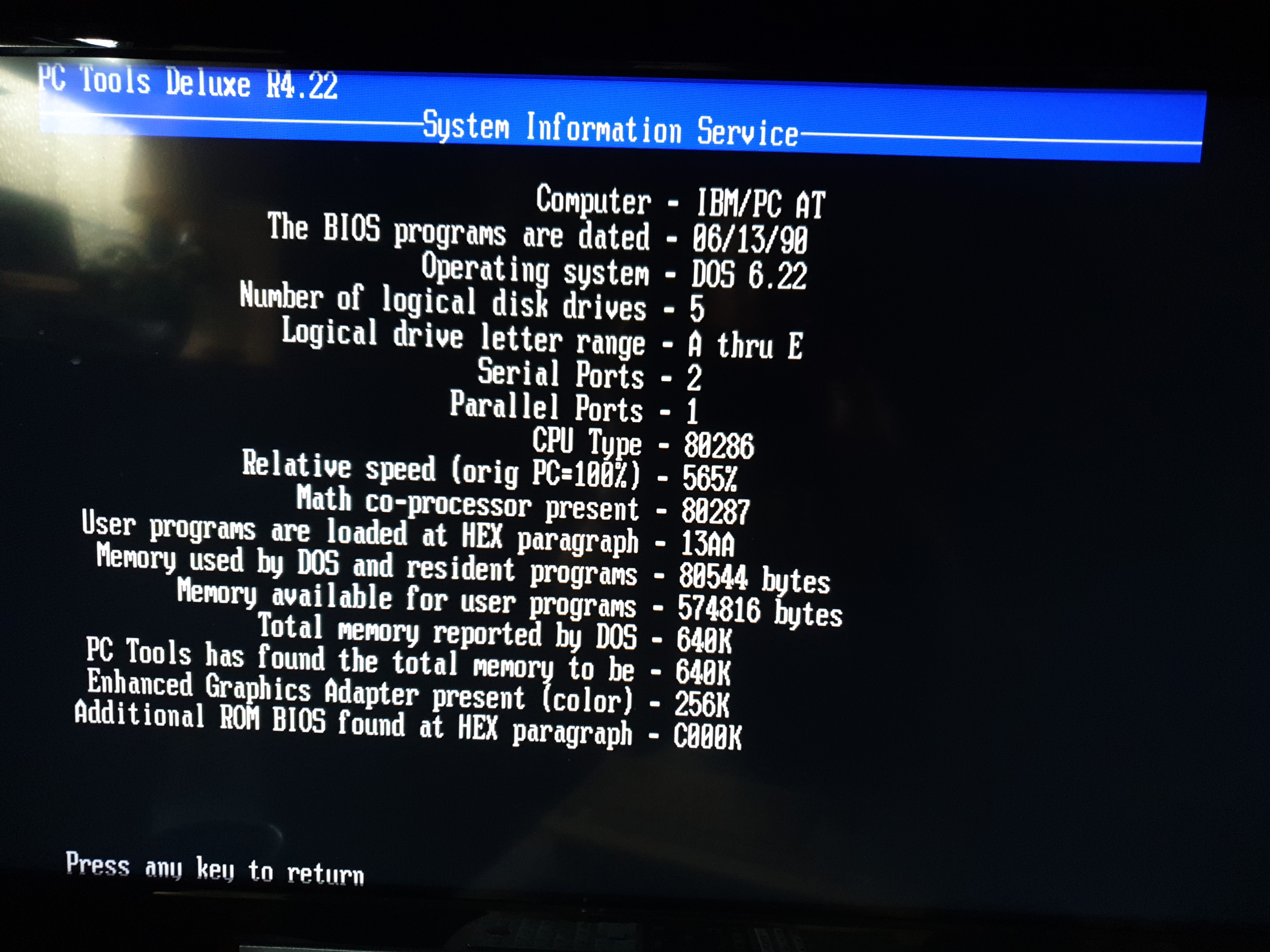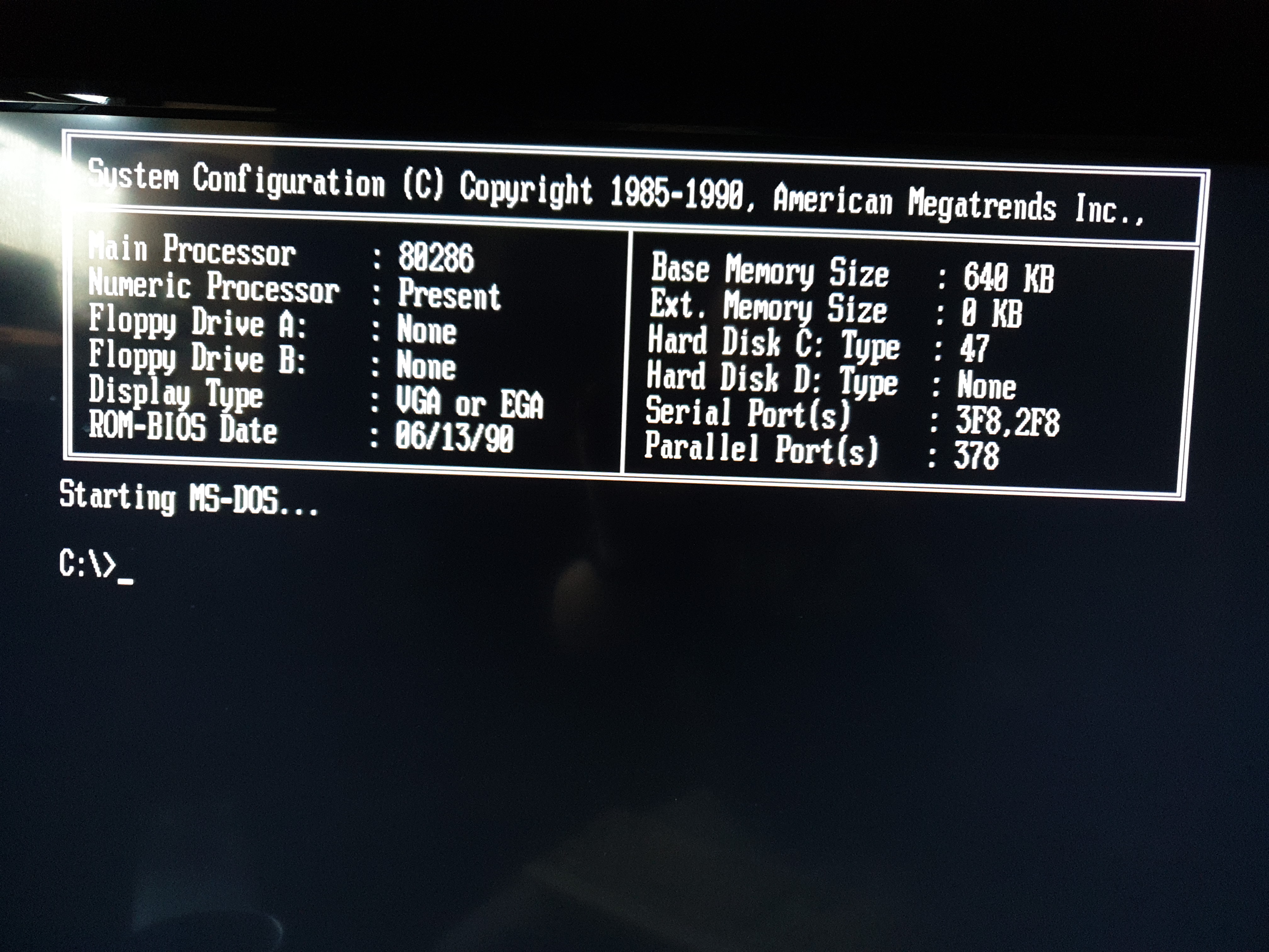 Incidentally, this BIOS is of course far too old to have an auto-detect feature for IDE hard disks. Because of this, I always write on my CF card's white label area how many cyls, heads and sectors per track it has so that information is conveniently available when I need it.