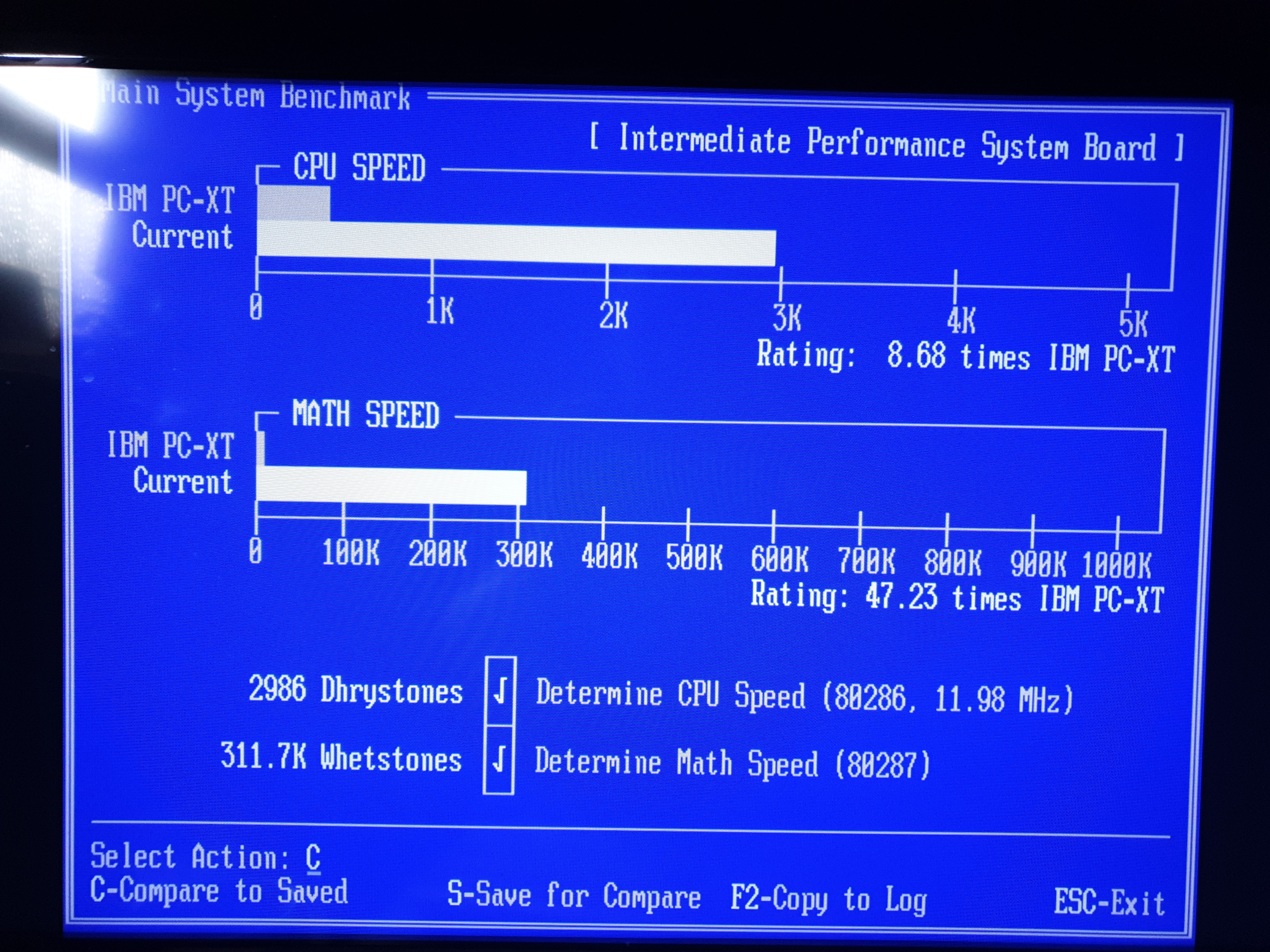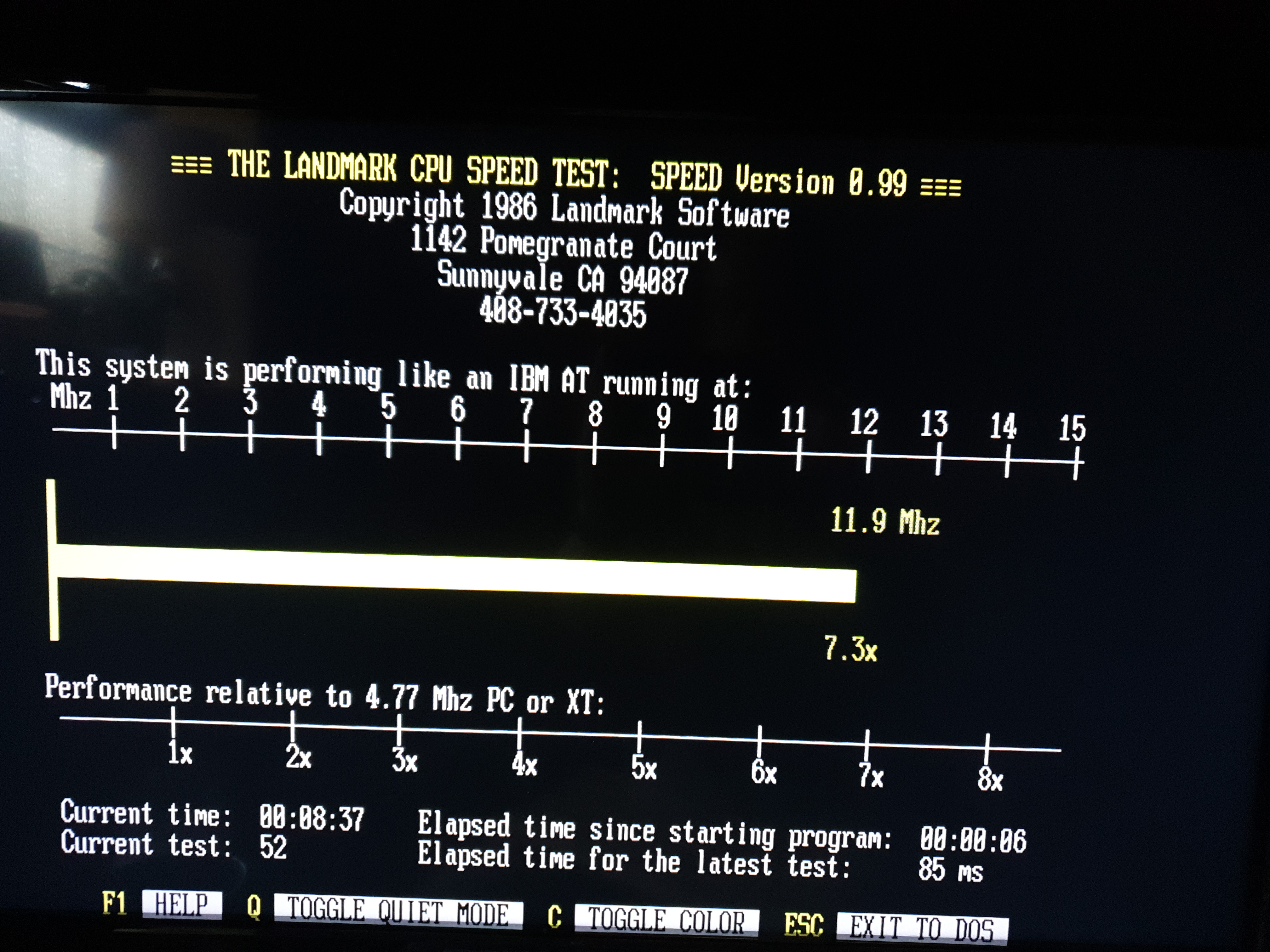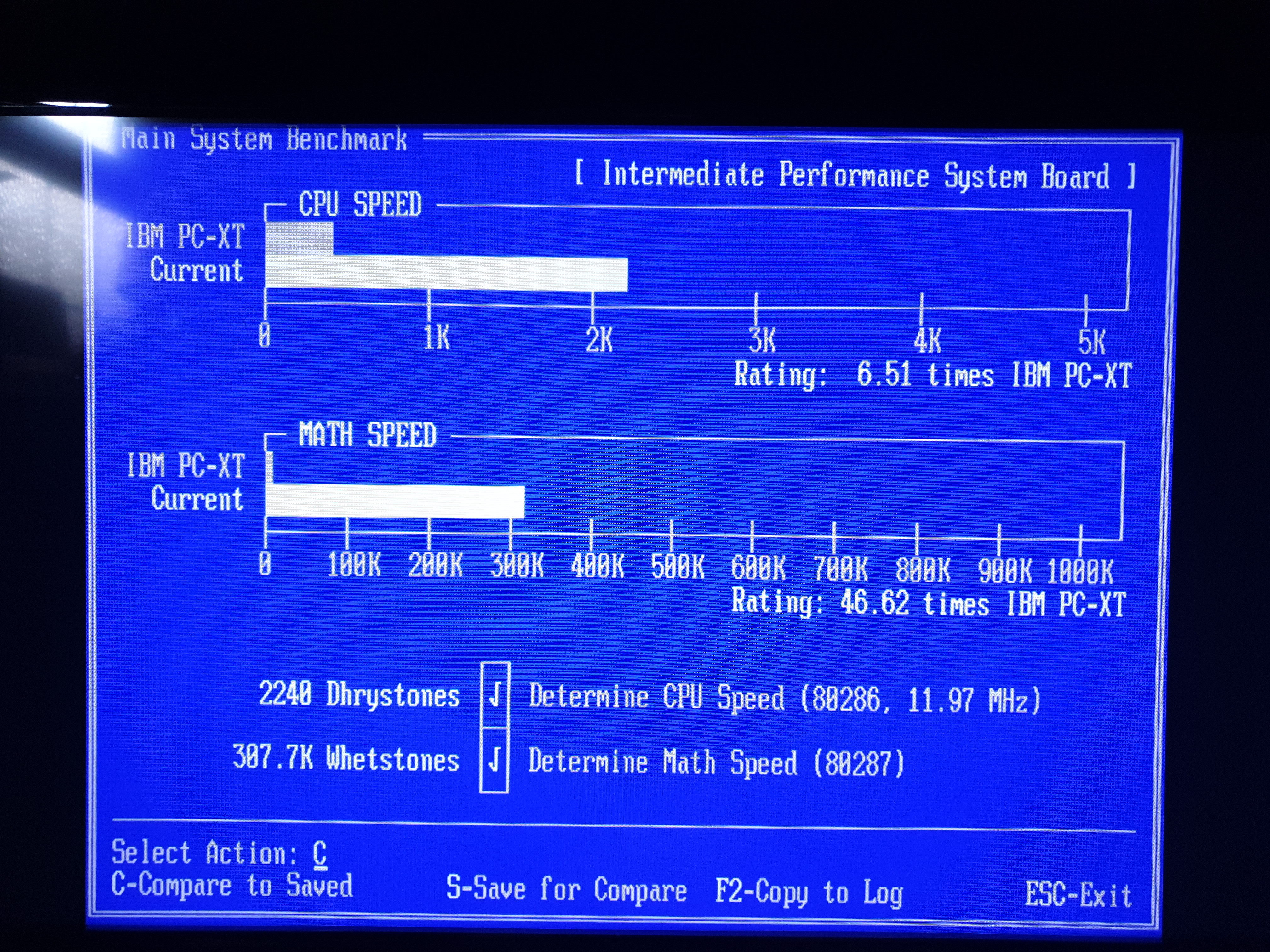 So on average, moving the RAM from 1 to 0 wait states and shadowing the main and video ROMs to RAM improved performance by almost a third. Comparing these 0 wait state (WS) results here against others from Page 2, it appears we get similar performance from a 12 MHz 0WS setting as we do running at 16 MHz with 1WS.